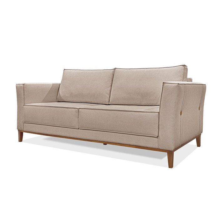 Sofá 2 Lugares 1,90m Estofado em Linho Rústico Areia com Pés de Madeira - Barão Lucadi Home Areia