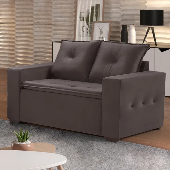 Sofá 2 Lugares 150cm M140 Martins Estofados Suede/Marrom Chocolate