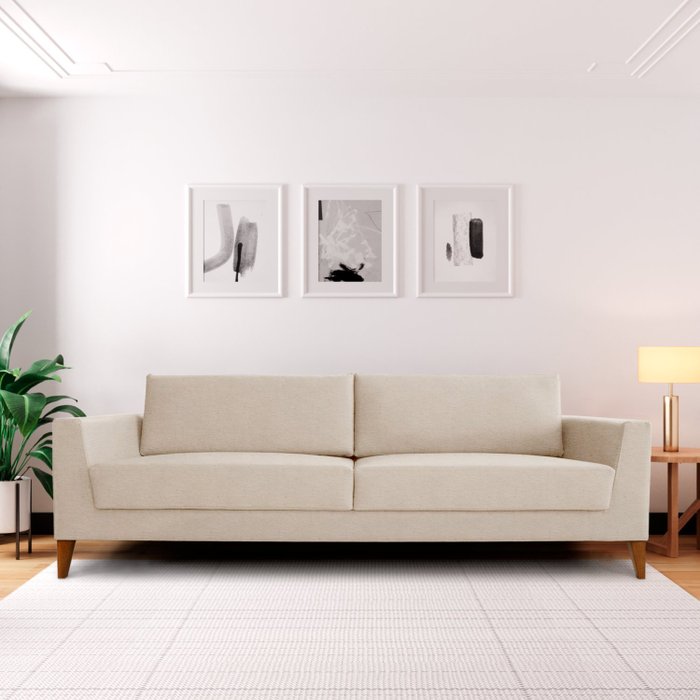 Sofá 2 Lugares 180cm Break Estilo Moderno Linho Pés em Madeira Maciça Bege