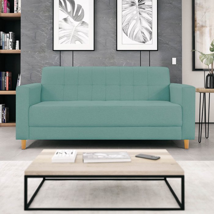 Sofá 2 Lugares 180cm Suede Dallas Azul Tiffany
