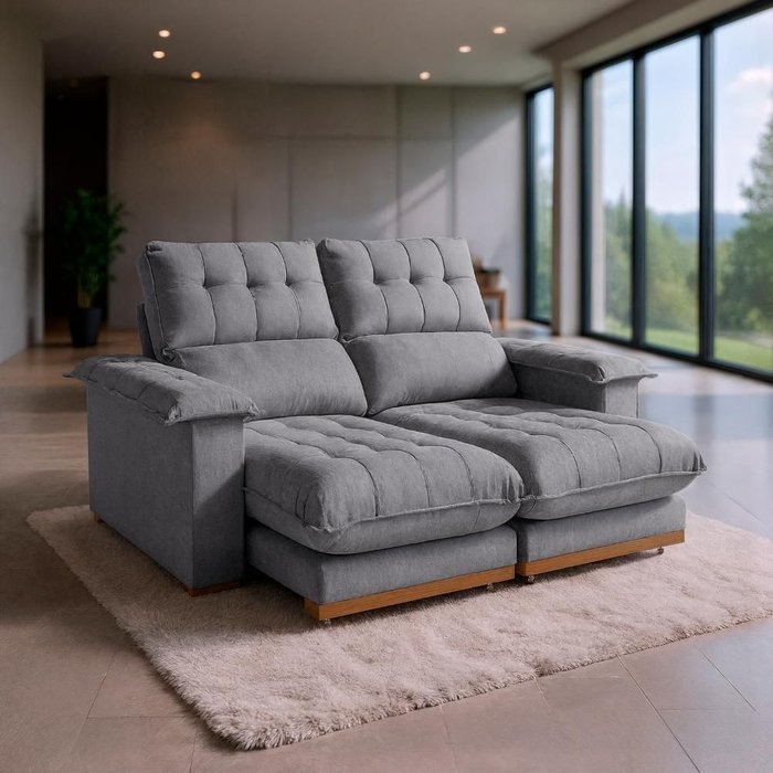 Sofá 2 Lugares 2,00m Retrátil e Reclinável Milano Bom Pastor Linho Cinza
