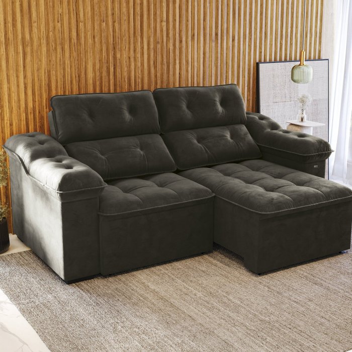 Sofá 2 Lugares 260cm Retrátil e Reclinável Sierra Suede Titânio