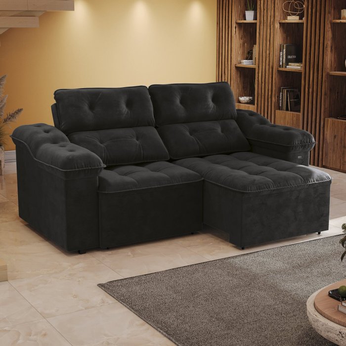 Sofá 2 Lugares 260cm Retrátil e Reclinável Sierra Suede Titânio