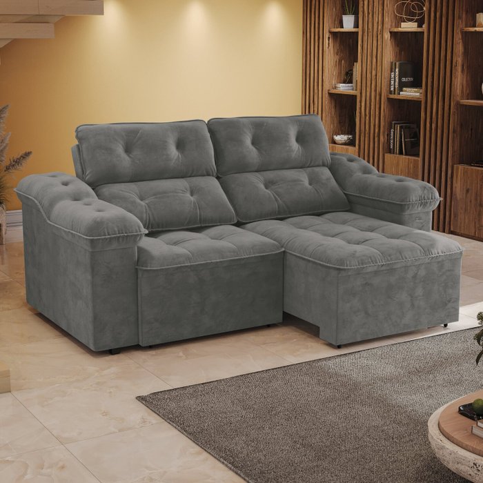 Sofá 2 Lugares 260cm Retrátil e Reclinável Sierra Suede Titânio