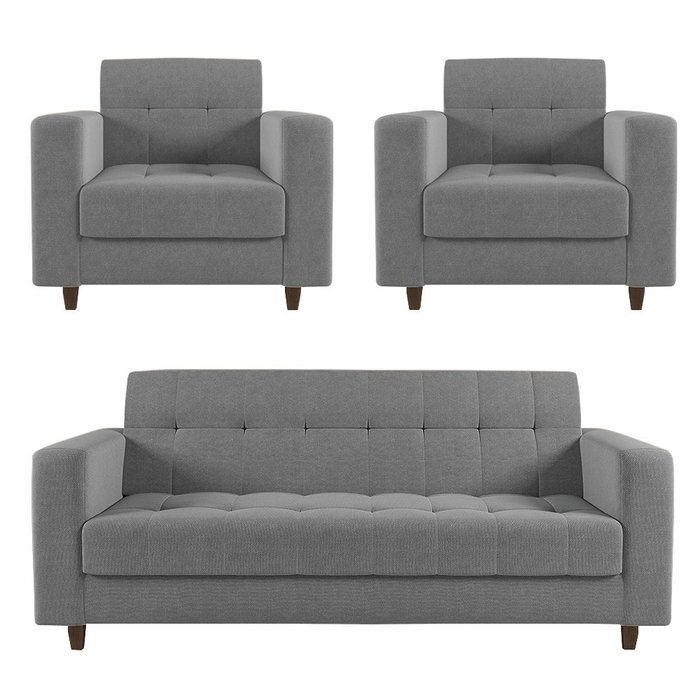 Sofá 2 Lugares e 2 Poltronas Pé Madeira Tabaco Arezo Linho Grafite D01 - D’Rossi Grafite A26