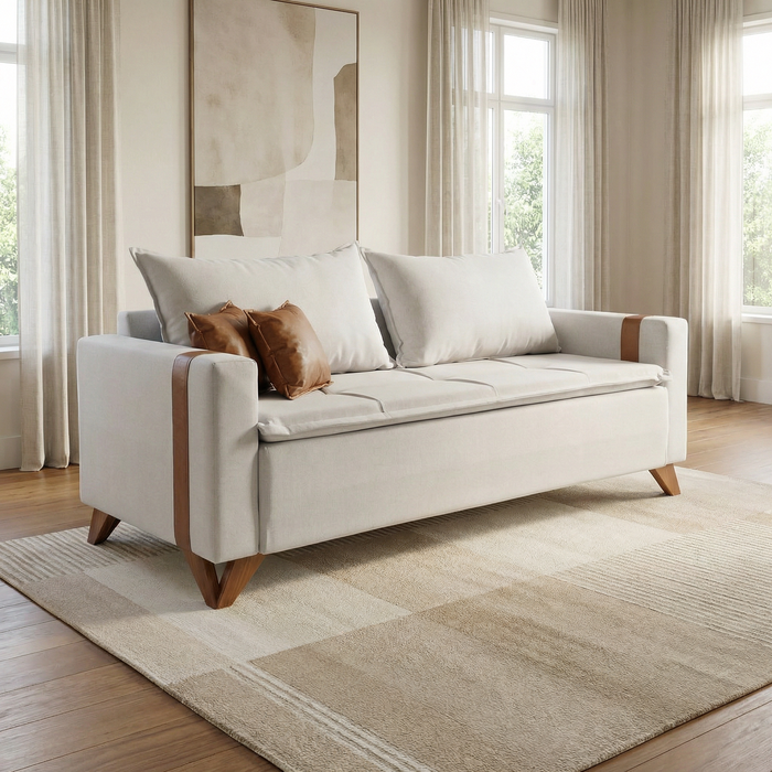 Estilo e personalidade que se destacam. O Sofá Living Espanha é uma peça de design marcante, que combina detalhes em couro nos braços com o charme dos pés palito em madeira de eucalipto tratado, criando um visual único e sofisticado. O acabamento em pillow nos braços acrescenta um toque extra de elegância e conforto ao conjunto. Com assento fixo em espuma D-26 e percintas elásticas, oferece firmeza ideal para o uso cotidiano, enquanto as almofadas soltas do encosto, em fibra de silicone, proporcionam o acolhimento perfeito para relaxar. Um sofá que é, ao mesmo tempo, um objeto de decoração.