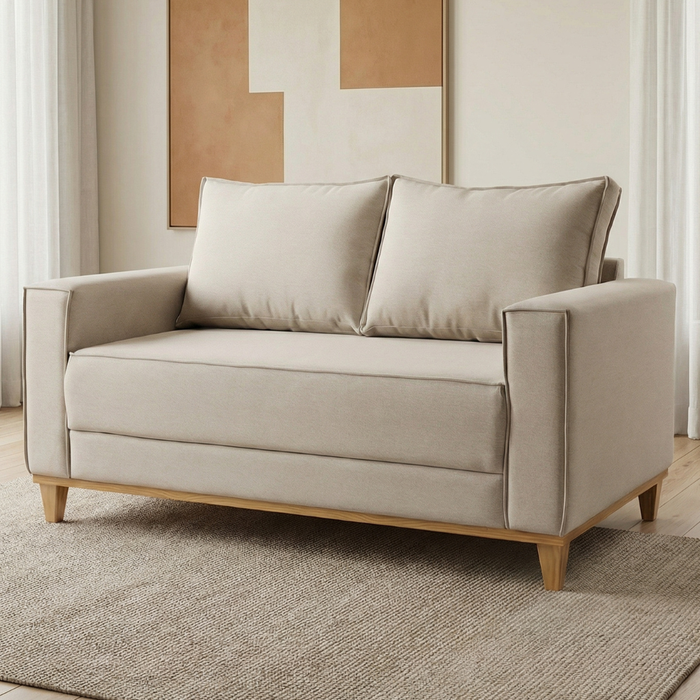 Sofá 2 Lugares Hungria Base Madeira Tecido Linho Cru Living 1,40m