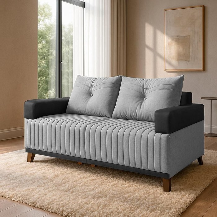 Sofá 2 Lugares Leona Bom Pastor Linho Cinza/preto