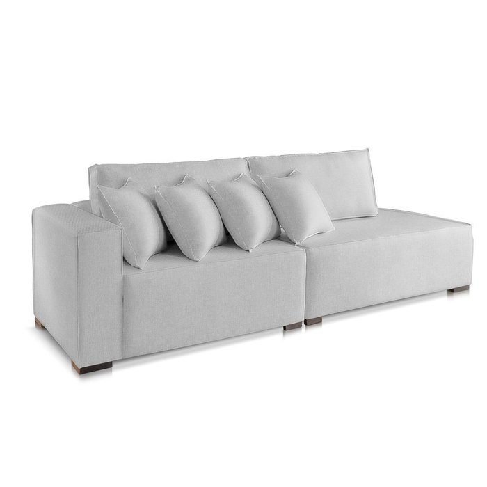 Sofá 2 Lugares Modulado Chaise Almofada Solta Molas Isa Be Linho Cinza Claro 1,9m