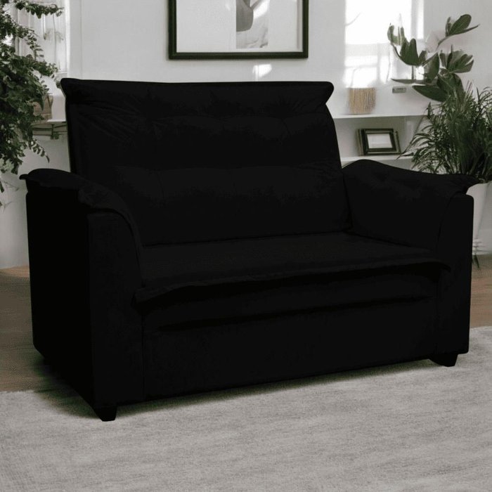 Sofá 2 Lugares Namoradeira Marrocos 1,40m Sala de Tv Estar Recepção Suede Preto Mabe Magazine Preto