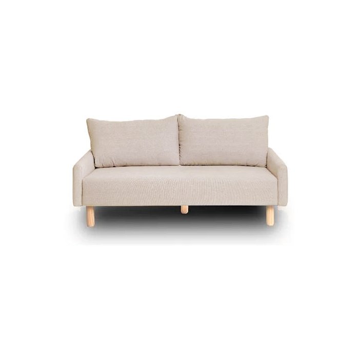 Sofá 2 lugares, pés de madeira, almofadas soltas no encosto - Mocassim bege