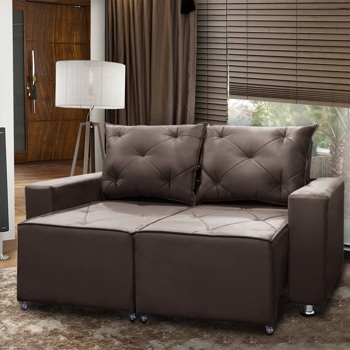 Sofá 2 Lugares Retrátil e Reclinável Bariloche 1.60cm C/ Molas - Suede Café
