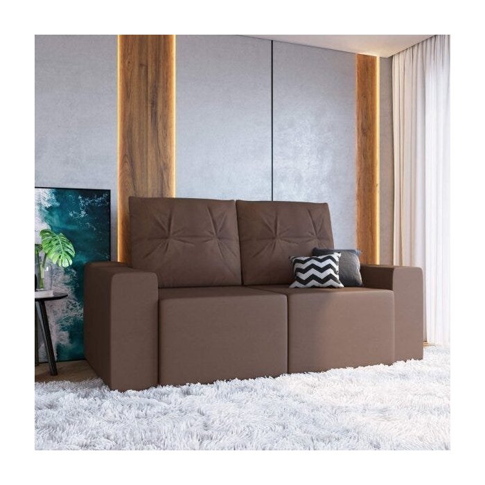 Sofá 2 Lugares Retrátil Suede Veludo Miami Espresso Móveis Marrom