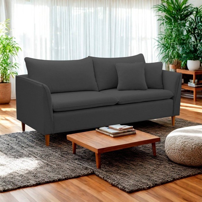Sofá 2 Lugares Retrô 164cm Veludo Kassia Grafite