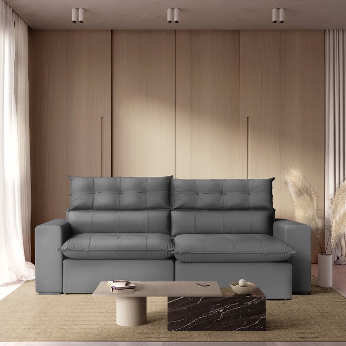 Sofá 210cm Retrátil e Reclinável Molas Ensacadas Cinza