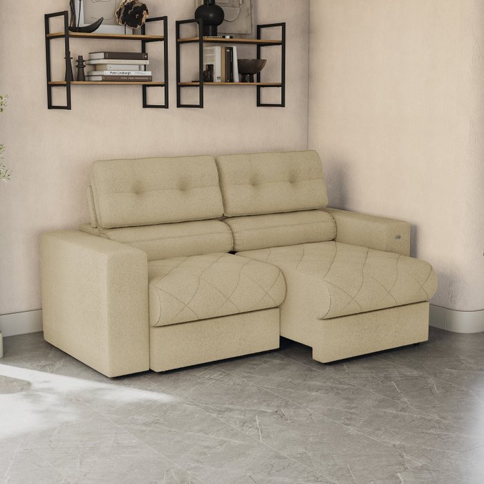 Sofá 230 Cm Retrátil e Reclinável Delta Bege