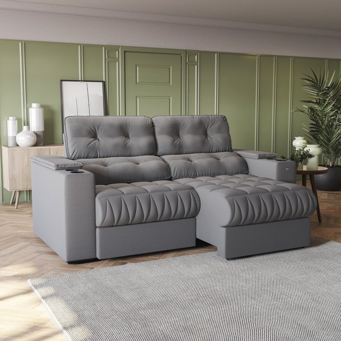 Símbolo de requinte e conforto, aposte no Sofá Premier 2,3m da Kappesberg. Produzido em madeira de eucalipto e MDF, ele conta com assentos retráteis e encostos articuláveis em seis posições, permitindo ajustar conforme a sua preferência. Com molas bonnel nos assentos, espumas certificadas e enchimento com fibras e flocos, ele proporciona o máximo de conforto. E medindo 1,14m de altura, 2,31m de largura e 1,32m de profundidade, suportando até 120kg por assento, essa será a escolha ideal para você. Revestido com tecido Suede Cinza Titânio, com um toque suave e gostoso, os destaques são seu assento com detalhe curvo, suas costuras e puxes, e suas almofadas de braço retráteis, contando com descanso de copos, tornando seus momentos especiais. Cada detalhe pensado para transformar seus momentos.