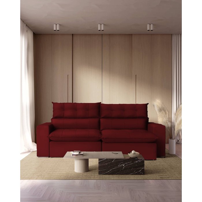 Sofá 250 Cm Retrátil e Reclinável Molas Ensacadas Vermelho