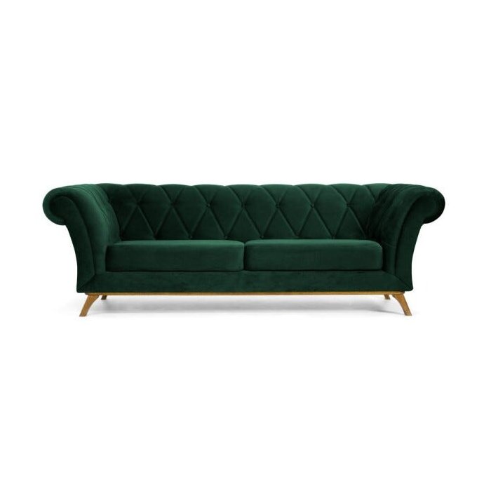 Sofá 3,00M 4 Lugares Base Madeira Império B-303 Veludo Verde Musgo - Domi