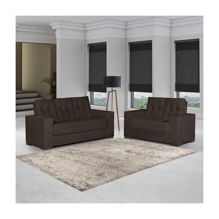 Sofá 3 e 2 Lugares Turim - 1,85/1,40M - Veludo Marrom