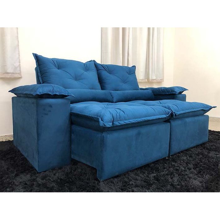 Sofá 3 e 4 Lugares Retrátil e Reclinável 2,30 Metros Alpoim Estofados Azul 206 Athenas Azul