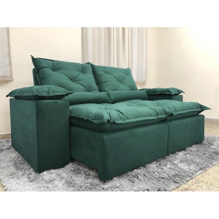Sofá 3 e 4 Lugares Retrátil e Reclinável 2,30 Metros Alpoim Estofados Verde 18 Athenas