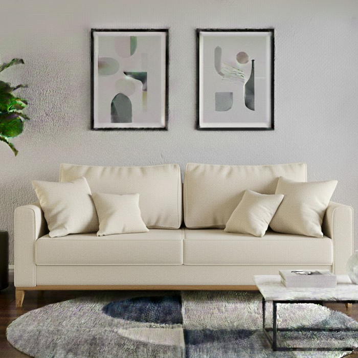 Sofá 3 Lugares, 1,80m, Living Beny, Base de Madeira, Tecido Linho. Cru