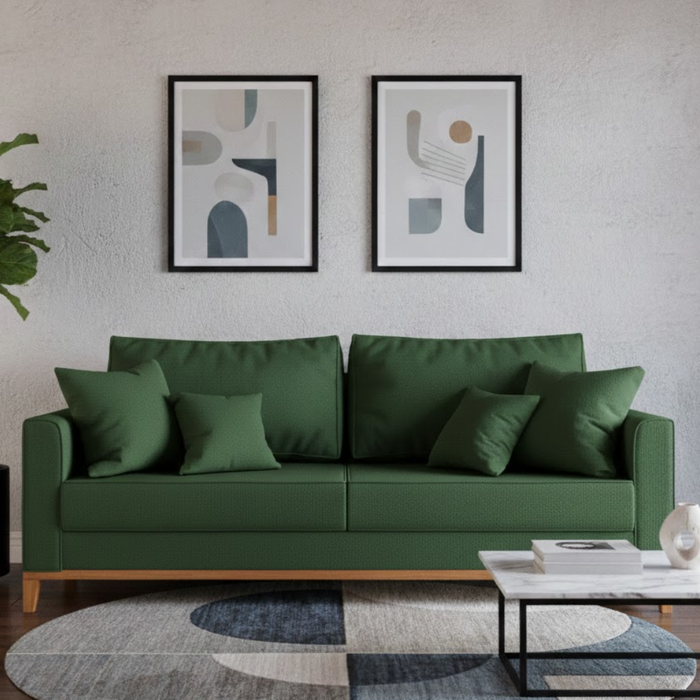 Sofá 3 Lugares, 1,80m, Living Beny, Base de Madeira, Tecido Linho. Verde Musgo