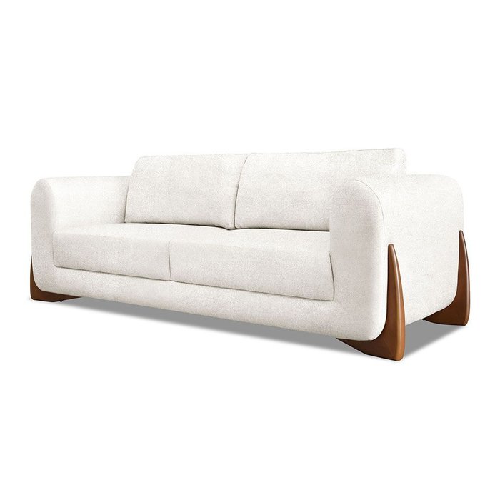 Sofá 3 Lugares 2,00m Linho Bouclé Off White com Detalhes em Madeira - Jobim Lucadi Home