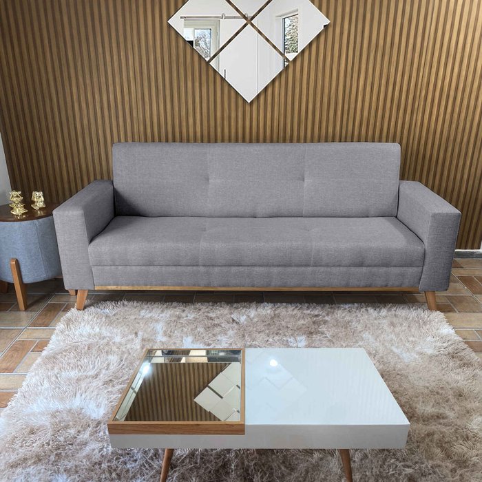 Sofá 3 Lugares 2,00m Living Madrid Estofados O Meu Móvel Cinza