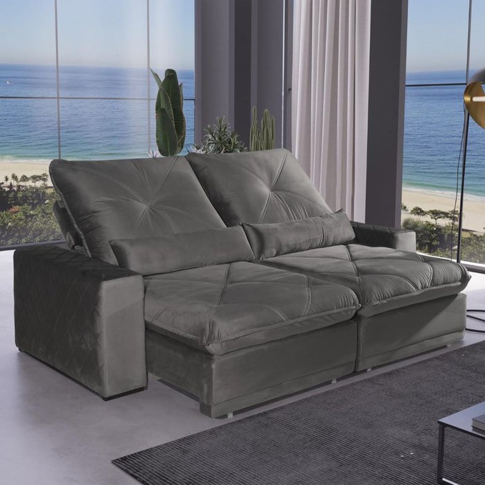 Sofá 3 Lugares 2,30m Retrátil e Reclinável Átila Bom Pastor Cinza