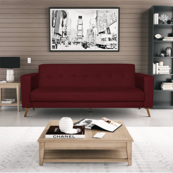 Sofá 3 Lugares 200cm Marisa Suede Yescasa Bordô