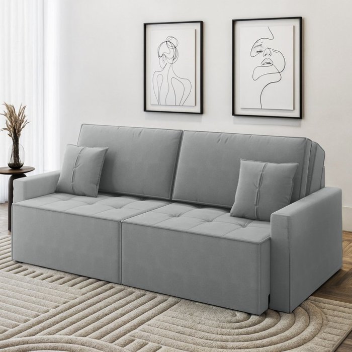 Sofá 3 Lugares 212 X 100 X 90 Cm Veludo Tomie Yescasa Cinza