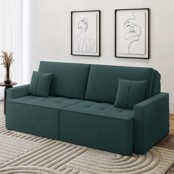 Sofá 3 Lugares 212 X 100 X 90 Cm Veludo Tomie Yescasa Verde Militar