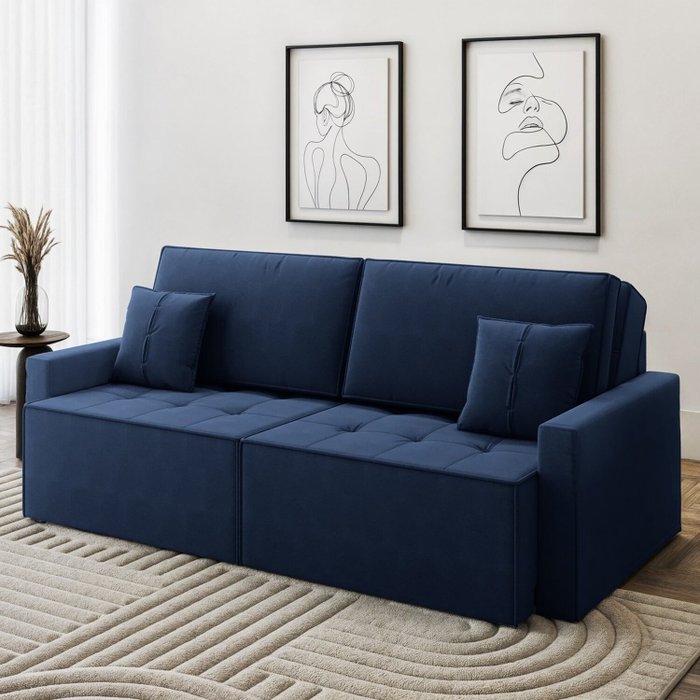 Sofá 3 Lugares 212 X 100 X 90 Cm Veludo Tomie Yescasa Azul Marinho