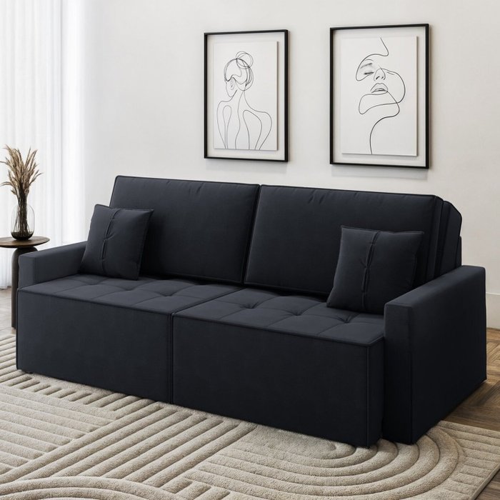 Sofá 3 Lugares 212 X 100 X 90 Cm Veludo Tomie Yescasa Preto