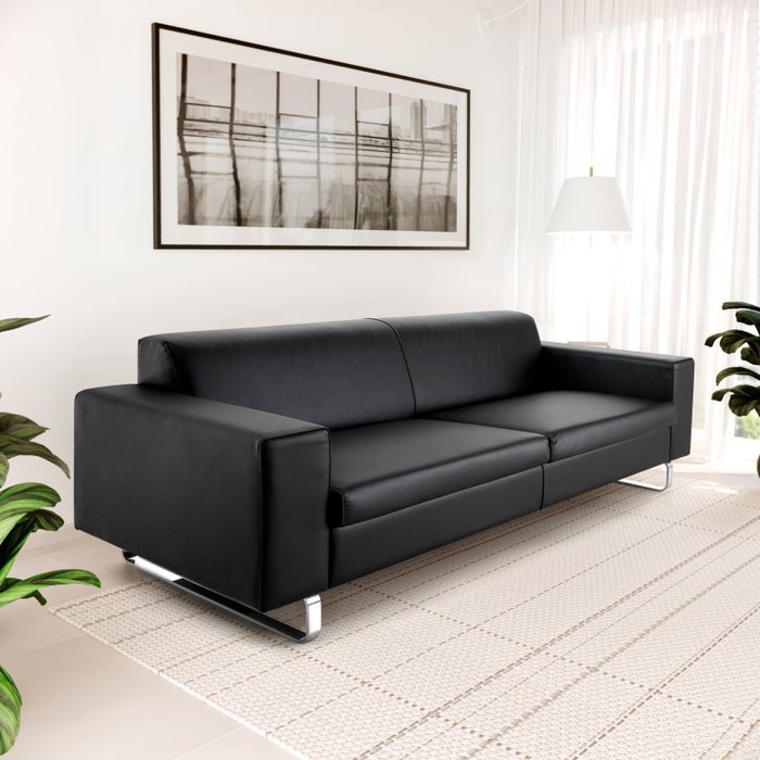 Sofá 3 Lugares 215cm Flit Estilo Moderno Courissimo Pés em Aluminio Polido Preto
