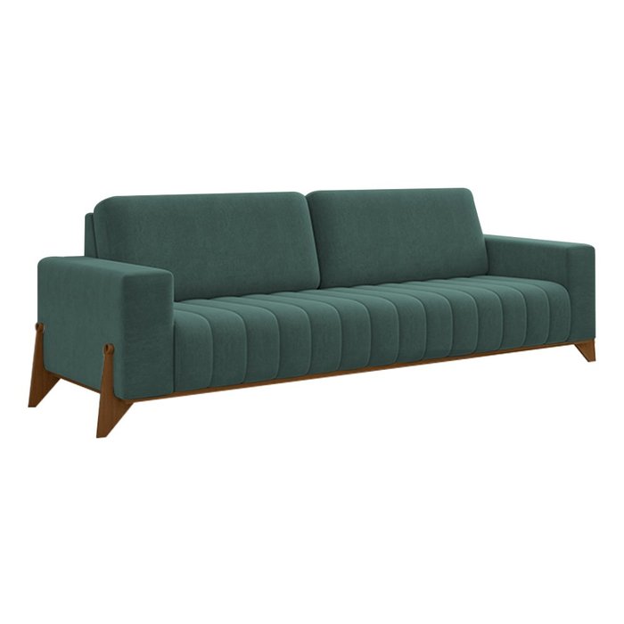 Sofá 3 Lugares 232cm Ouro Base Madeira Veludo Verde Petróleo - Sallar Home Verde Petróleo