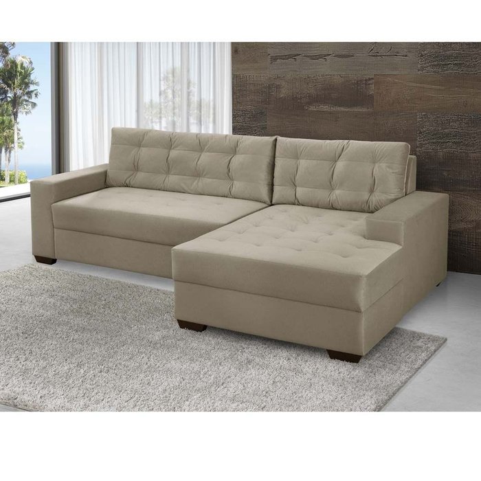 Sofá 3 Lugares American Comfort Larissa Chaise Lado Direito Bege