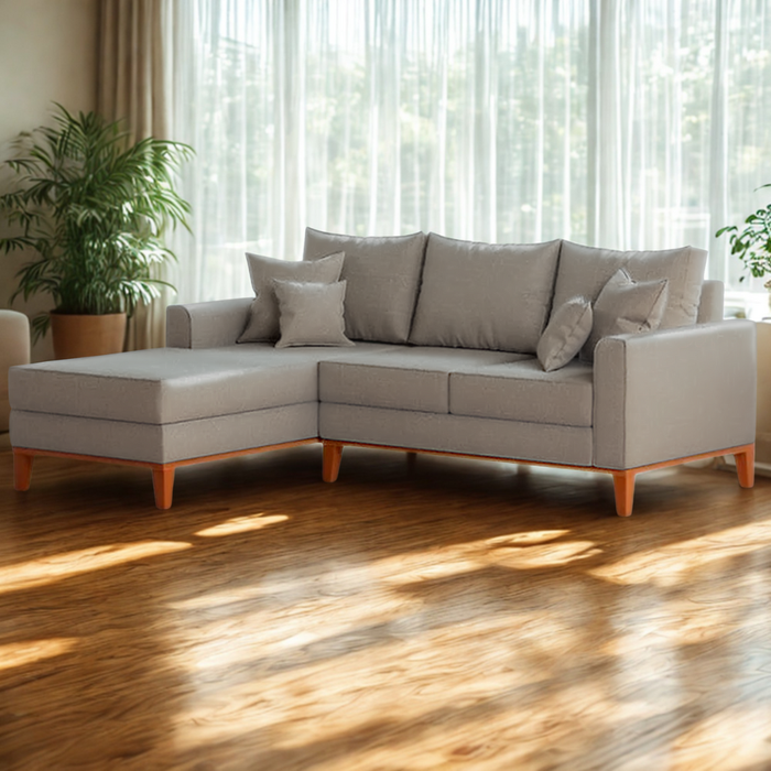 Sofá 3 Lugares Beny com Chaise Esquerdo Linho Cinza
