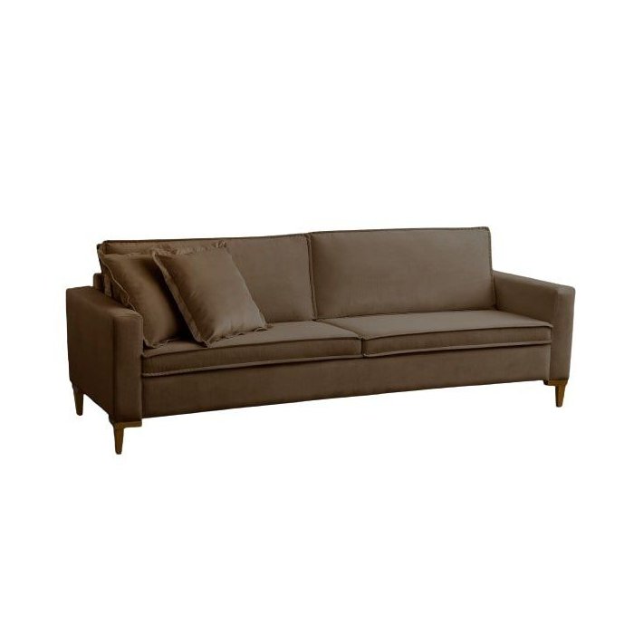 Sofá 3 Lugares Confortável Seattle Veludo Marrom Cookie - Meu Estofado Sofá 3 Lugares Confortável Se Marrom