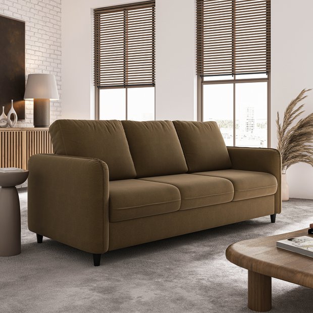 Sofá 3 Lugares em Orquídea CabeCasa MadeiraOriginals Veludo Marrom