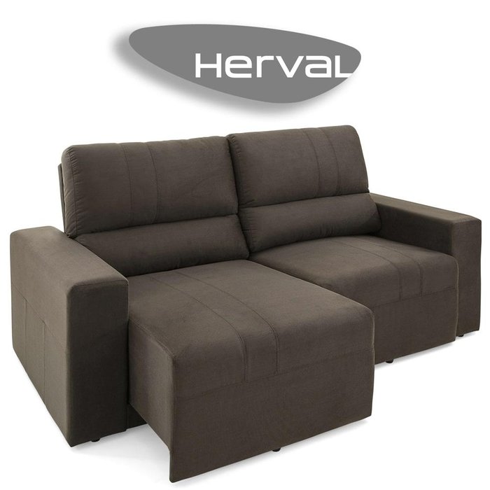 Sofá 3 Lugares Herval Village, Retrátil e Reclinável, Veludo Molhado Marrom Escuro