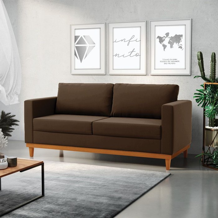 Sofá 3 Lugares Juliette Suede Base Madeira Castanho - D’Rossi Marrom