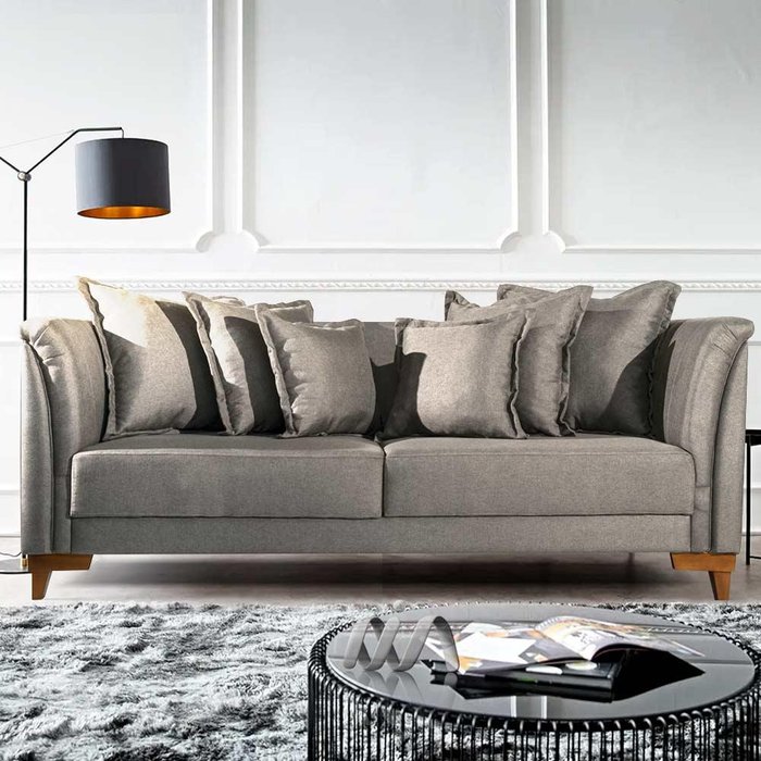 Sofá 3 Lugares Living 1,90M Linho Cinza Claro Nilo Shop JM