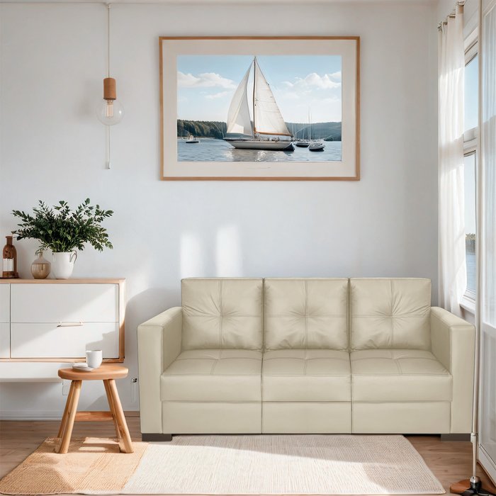 Sofa 3 Lugares Montenegro Sintético com Linha - Doce Sonho Móveis Sala de Estar,hall de Entrada,salã Bege com Linha Marrom