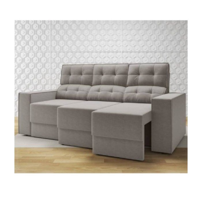 Sofá 3 Lugares Net Bob Assento Retrátil e Reclinável Cinza 2,05M (L)