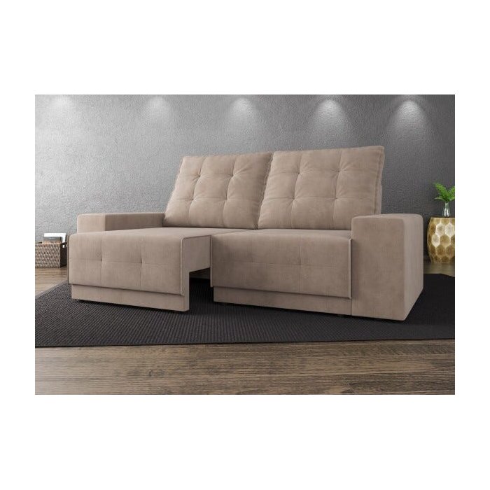 Exclusividade com requinte NETSOFAS. Informações técnicas: Material da estrutura: Madeira Maciça Eucalipto. Enchimento do Assento: Espuma D23 e Percinta Elástica. Enchimento do Encosto: Flocos de Espuma e Fibra Siliconada . Revestimento / Tecido: Velosuede Medidas: Altura aproximada: 102cm (fechado) e 87cm (aberto) Largura aproximada: 209cm Profundidade aproximada: 90cm (fechado), 125cm (aberto) e 145cm (aberto com encosto reclinado) Peso aproximado: 61kg Necessita montagem: Não Garantia: 3 meses contra defeito de fabricação Limpeza: Pano Umedecido ATENÇÃO! A tonalidade do produto pode variar entre a imagem de exibição e o item físico. Imagens meramente ilustrativas. Não nos responsabilizamos