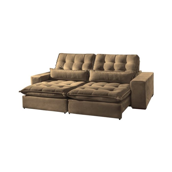 *Verifique nossas politicas internas para que não haja nenhuma dúvida no processo de entrega ao finalizar a compra.*Características do Sofá:- Estrutura: Madeira eucalipto reflorestada, seca e imunizada.- Assento: Retrátil, mola espiral, desnidade D28, manta siliconada.- Encosto: Reclinável, fibra 100% siliconada.- Braços: Densidade D28 selada.- Pés: Madeira tabaco.- Embalagem: Papel ondulado, plástico e malha.