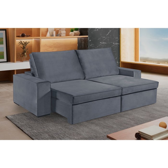 Sofá 3 Lugares Retrátil e Reclinável 230 Cm Samba Yescasa Grafite